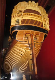 カナダのバンクーバー博物館に展示される精巧な戦列艦の模型である。船側外板や上甲板の張り板がほとんど取り外され、戦列艦の