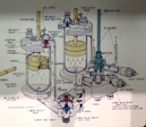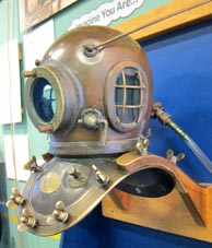 1. 潜水ヘルメット。 [拡大画像: x26639.jpg] 2. 潜水装置展示コーナー全景。 [拡大画像: x26640.jpg] 3. 送気ポンプ構造図(その1)。 [拡大画像: x26641.jpg] 4. 送気ポンプ構造図(その2)。 [拡大画像: x26642.jpg] |