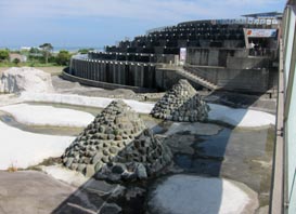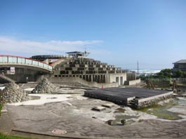 茫洋たる太平洋を左手に眺めながら外房の国道をドライブしていた折、風変わりな館に遭遇し、たまたま立ち寄った。 館の1階は物産館、2階はレストランで、3回には展望テラスがあり、太平洋を一望できる。眼下の岩だらけの海岸には 小さな漁港があって、いくつかの小型沿岸漁船が浜揚げされている(台風の影響による)。 レストランで喫茶しながら、この風変わりな館のコンセプトは何なのか、自問自答を試みてみた。 館の周囲はプールとなっている(今は水が抜かれて、干し上がっているようだ)。それは海をイメージしたものか。 プールには4つほどの円錐状のものが突き出ている。海底火山をイメージしたように見える。 この館はいわば太平洋に浮かぶ島をイメージしたものに違いない。 島にそびえる山からは地下水がこんこんと湧き出て、滝となって島の大地を潤し、海へと注ぎ込み生命を育んでいる。 そして、海洋と陸地(島)の自然は人間に多くの恵みをもたらし、その営みを支えてくれている、そんなコンセプトで 創造されたものであろうか。 友人に促され冷めたコーヒーを飲み干し、道の駅を後にして野島崎灯台へと向かう。 [2015.6.19 記/撮影: 2015.5.20、千葉県鴨川市江見太夫崎/道の駅「鴨川オーシャンパーク」にて] [拡大画像: x26876.jpg] |
