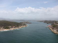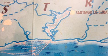 サンティアゴ・デ・クーバ湾 (Bahía de Santiago de Cuba)の奥に位置する (画像7参照)。画像1~3に見られるように、