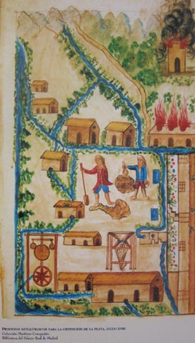 Desde la década de 1530 comenzó la explotación de las minas de Taxco, al sur de la ciudad de México; las de Guachinango, establecidas en 1543 al noroeste de esa ciudad, y las de Pachuca, descubiertas en 1552 al norte. Se inició entonces el traslado de oro y plata hacia el Viejo Mundo, incrementado en 1545 con las vetas del Cerro de Potosí. |