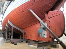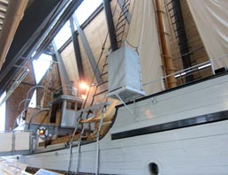 三角屋根のこの大きな館にすっぽりと収められている。同号の船上見学は学芸員による付き添い案内によってのみ可能