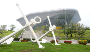 釜山・影島の国立海洋博物館の正面玄関ホール 1 階から展示室のある上階へ昇るエレベーター直下に設置されている。見学者のほとんどが