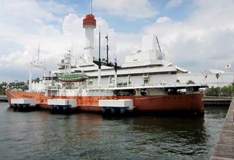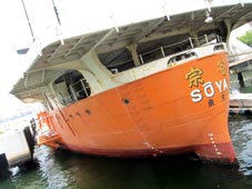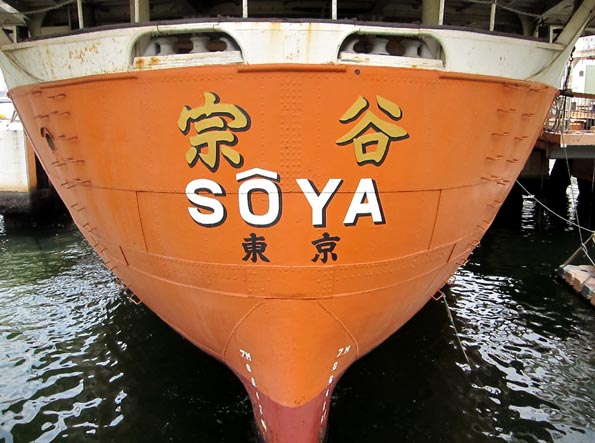 画像は東京の「船の科学館 (Museum of Maritime Science)」のそばの埠頭に係留され一般公開される初代の南極観測船「宗谷」である。