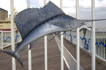 そのすぐ隣に水産庁専用となっているバースがある。その入り口の門柱にトビウオがブルースカイに翼を広げて高々と大空に