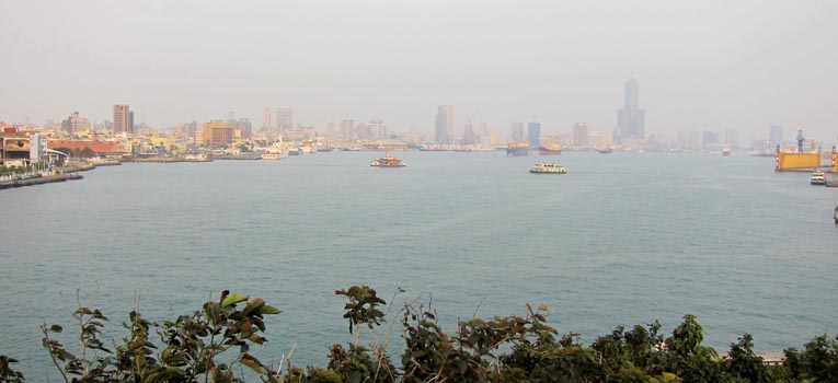 画像 3 はその丘上から高雄港(港口は画面のすぐ左側にある) を眺望したものである。巨船が悠然と狭い港口を通過して行く