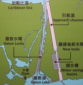 9基の節水槽 water saving basins) である。従前のパナマ運河では毎年12,000隻ほどの船舶が通航していた。太平洋・