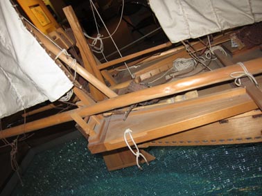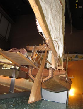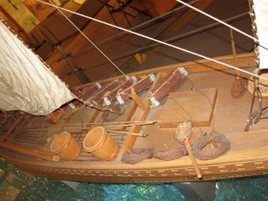画像 1 & 2 は東京・品川区立品川歴史館に常設展示される、小島延喜氏製作の縮尺1/6の桁船(けたぶね)の小型復元船である。