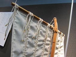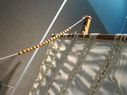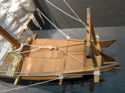 画像はそこで展示された、滋賀県琵琶湖やその周辺水系において用いられた丸子船の模型である。 [画像撮影: 2017.3.17 神奈川大学・日本常民文化研究所にて][拡大画像: x27603.jpg] |