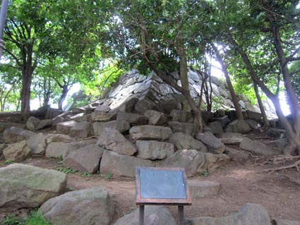 ここに使用してある石は、昭和60年東京都が日本橋川右岸改修工事をした際雉子 (きじ) 橋付近から発生した石垣の一部です。 徳川幕府は慶長10年(西暦1605年)第二期江戸城建設にあたり、江戸城およびお濠の石垣採取輸送を中国、四国、九州の31大名に命じ ました。石の大部分は伊豆半島の東海岸から切り出され江戸まで運ばれましたが、石の切し、海岸までの輸送、陸揚げ等一連の作業は 困難をきわめ、たいへんなお金と労力と犠牲がはらわれています。 また石には、各大名、組頭、石工等のものと思われる紋や目印等が刻まれているものもあります。 平成元年4月 中央区土木部公園緑地課 |