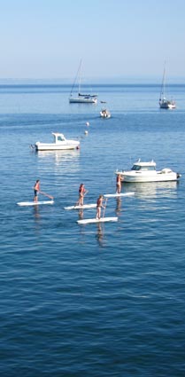 立ち漕ぎをするボード・パドラーたち/ポルトガル・カスカイスでの海景(2)
