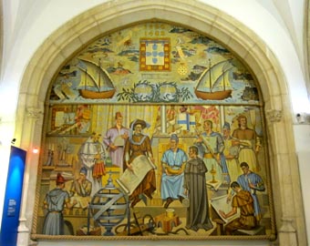 1. 撮影年月日: 2018年9月22日 2. 撮影場所: ポルトガル、リスボン、海洋博物館 Museu de Marinha - Maritime Museum, Lisbon、Portugal 3. エンリケ航海王子は、母国ポルトガルからアフリカ大陸西岸を南下し、インド洋への出口を探り、アジアへ到達する海路を見い出さんと、 生涯をかけ、かつ長期的視点をもって取り組んだ。エンリケ自身はバルトロミュー・ディアスによるアフリカ南端の周航や、バスコ・ダ・ ガマによるインド西岸への到達を見届けることはなかった。 だが、彼のアフリカ周回航路開拓事業への思いは後年の探検航海家らによって成し遂げられた。エンリケはその探検航海を推し進めるために、 ポルトガル最南西端のサグレス岬に「航海学校」を設立したとされる。本当に航海学校なるものを設立したのかどうか、それは定かでは ないとされる。だがしかし、その設立の真偽のほどはさほど重要なことではない。 画像はリスボンの海洋博物館に展示される、大索で縁どられた大きな絵画である。エンリケを中心にして、四分儀、アストロラーベ、 船の模型、オール、地図などをもつ男たちが描かれている。天文学者、地図製作者、航海家や船乗り、造船技術者、伝道師などを 描いているのであろう。重要なのは、そのような知識人、科学者、技術者らがサグレス岬に集められ、当時の最先端の知恵・知見・知識を 互いに学び、しかも実践に移すことに取り組んだことであろう。まさにエンリケを「校長」とし、それら大勢を「生徒」とする 「学校」がそこにあったといえよう。インド洋への航路を拓きアジアを目指すという一つの壮大な志しを共有する場であったに違いない。 絵画には、1394年から1460年まで生きたエンリケの生涯において成し遂げられた主なアフリカ西岸探検の出来事が記される。因みに 1415年セウタの占拠、さらに1427年アゾレス諸島、1434年ボジャドール岬、1441年ブランコ岬、1459年シェラ・レオネ、1460年カーボヴェルデ岬 などへの到達である。 [拡大画像: x28248.jpg] |