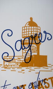 6![]() 6. サグレスの町から岬へ2本のアクセス道が伸びる。それらが収斂する交点に要塞が建つ。岬先端には灯台マークが記される。 地図下方が南の方位。南下すればアフリカ大陸のモロッコに至る。