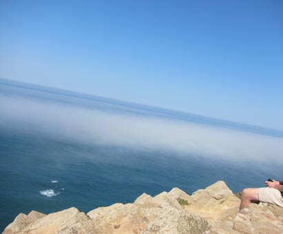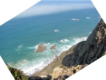 Latitude 38o 47 Norte 画像1~3: 岬に立てば西方に向かって大西洋が180度広がる。画像2は「十字架の塔」、画像3は「ロカ岬灯台」。眼下眼前の海はにわか霧に 覆われ、断崖に沿って湧き昇ってくる。