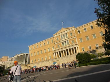 国会議事堂はアテネ市街中心地の一つのシンタグマ地区にある。アマリアス通りをはさんで「シンタグマ広場」の対面に位置する。 メトロ・ラインNo.3またはNo.2の「シンタグマ」駅で下車してすぐの目と鼻の先にある。