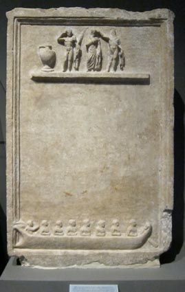 画像はギリシア・アテネの国立考古学博物館に展示される石碑に刻まれたボートのレリーフである。