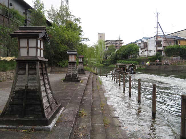 旧・伏見港のなかでも「京橋」はその中心であった。画像2は現在の京橋のたもとにある船着き場の現風景である。燈籠の左側の住居の裏手に「旅籠・寺田屋」がある。