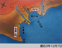 図絵: 「イラストレイテッド・ロンドン・ニューズ」に掲載された神戸開港 (1868年) の様子を伝える図絵、幕末の頃などの神戸漁場・生田浜・大阪渡海場・兵庫津や神戸村・湊川川尻・高浜(北前船の船囲場)・和田御崎などの図絵、 「摂州神戸海岸繁栄図」 (長谷川小信・作/明治初期)、神戸築港変遷略図絵(慶応3年~昭和45年). 地図: 大正中期から昭和中期にかけての神戸港の古地図3葉. パネル(中世・近世の兵庫津): 平清盛と大輪田泊(おおわだのとまり)改築や人工島「経ヶ島」 (きょうがしま) の 建設パネル、足利義満と兵庫津・日明貿易に関するパネル、江戸時代の兵庫津や高田屋嘉兵衛の弁才船・海運業に関するパネル. 模型: 未来のターミナル模型、日本初の築港のための鉄筋コンクリートケーソン製作に活躍したL型浮ドックの模型、海面清掃兼油回収船模型、船具の展示. その他: 神戸港修築の歴史、神戸港・築港へのあゆみ年表(1173年~2004年)、震災資料(M7.2の直下型大地震「阪神・淡路大震災」、 復旧・復興への取り組みなど)、神戸港湾事務所の仕事(港の整備、環境保全の取り組みなど)、みなとの情報(パンフレット、写真集、図書資料 など) [撮影年月日:2020年10月8日/撮影場所:神戸市中央区小野浜町7-30 近畿地方整備局神戸港湾事務所敷地内「神戸築港資料館ピアしっくす」] [z23738.jpg][拡大画像: x28853.jpg] |