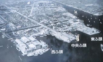 1 2![]() 「鉄桟橋」は現・中央埠頭中ほど辺りに突き出ていた。 |