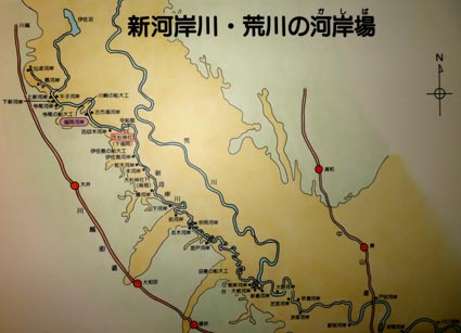 略図 「新河岸川・荒川の河岸場」/福岡河岸の位置も示される。→ (左図)拡大地図(z23841.jpg) (下図)拡大地図(z23843.jpg)拡大地図をご覧ください。 |