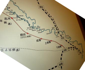 明治期に入ると、荒物・酒・塩の小売り、製茶も始め、1895年(明治28年)に開通した川越鉄道(現在の西武新宿線) も利用して商売を拡大して行った。他方、新河岸川による回漕業は、川越鉄道輸送の拡大に伴い縮小し、明治末年 には福田屋も「江戸屋」も共に船問屋の営業を取り止めた。 1914年(大正3年)には星野仙蔵をはじめ地元関係者の努力で新河岸川舟運に代わる新しい交通手段として東上 鉄道(東上線)の池袋・川越間が開通し、上福岡駅が開設された。 その後1921年(大正10年)に着工された河川改修工事により、新河岸川の流れが大きく変わり、最後まで営業していた 「吉野屋」も大正末期には廃業した。そして、1931年(昭和6年)に通船停止令が出され、事実上新河岸川舟運 は約300年の歴史を閉じた。 [撮影年月日:2020.8.9/撮影場所: ふじみ野(旧・上福岡)市立福岡河岸記念館(回漕問屋・旧福田屋)] [拡大画像: x28887.jpg][拡大画像: x28914.jpg: 説明書き「回漕問屋 福田屋」] |