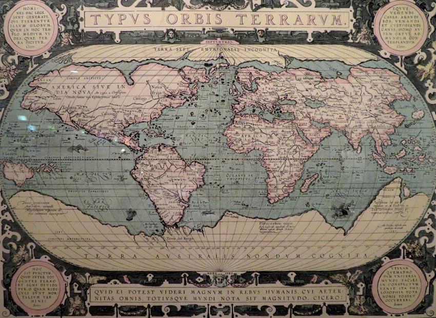 全世界のおよその姿が知られるようになった。オルテリウスは、1570年に「世界の舞台」と題する地図帳を完成した。大航海時代の探検