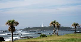 1. 野島埼灯台が立つヘッドランド(headland; 出鼻・岬角)を遠望する。 [拡大画像: x24181.jpg]
