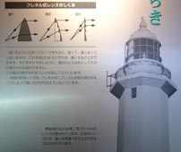 「ここに展示されているレンズは、福岡県の玄界灘の孤島、烏帽子島灯台で、明治8年から昭和50年まで使用されたものです。
