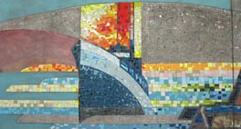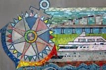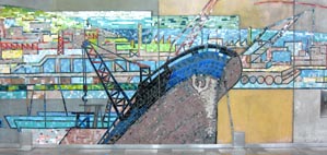 と海運の街風景をモチーフにして創作されたのがこのセラミック・アートであろう。中央洞駅改札口を出たところで遭遇したこのアート