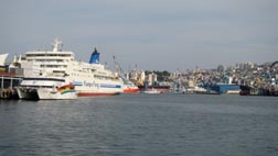 停泊し、出航準備中であった。海岸通りの大橋路に沿ってそぞろ歩く。済州島などへ渡る内航船が発着する沿岸旅客ターミナルを過ぎて、