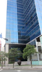 税関ビルに向かって海岸通りを横切ろうとした時、右手に茶色っぽいものが視界に入った。オフィスビル直下に何やらモニュメント