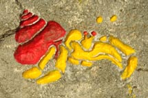 カメ、エビ、ヤドカリなどが彫り込まれているではないか。ストーン・アート、その石の彫り方もいい加減ではない。