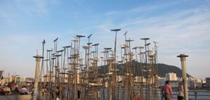 イワシの大群が空を舞う。豊漁を象徴しているのであろうか。釜山は海の幸に恵まれ、経済・社会が支えられてきた。そんな自然の恵み