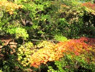 若々しい緑のもみじと色づき始めたもみじとのコントラストも美しい、美術館内での紅葉風景。 [拡大画像: x24215.jpg]