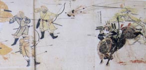 中空の陶製品で、内部に金属片を詰めたものもある。"蒙古襲来絵詞"