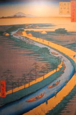 3.初代・歌川広重・作 ⌈名所江戸百系 四ツ木通り用水曳舟⌋ (安政4年)。