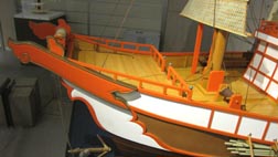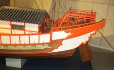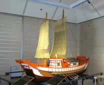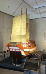 その企画展示室に展示されているのが、この本格的な遣唐使船の模型である。