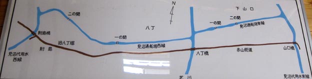 * 想定その一として、舟が芝川から通船堀を上り来て、「一の関」の閘門を通過し、「一の関」と「二の関」との間にある