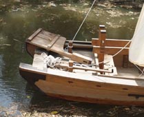 5 差し込み式の舵板。その手前にある細い棒が舵柄で、これを舵軸上部にある四角い孔に差し込み、舵柄を左右に動かし操船する。