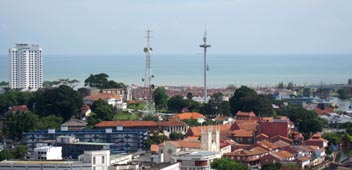 1. マラッカ市内の「Emperor」ホテルから、マラッカ旧市街中心部とマラッカ海峡を見下ろす。1511年にマラッカを支配した