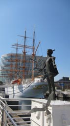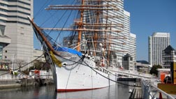 Port Museum」。そのパーク内のドックに帆船・日本丸が係留されている。