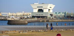 4. 「象の鼻」防波堤 (画像中央) は明治中期の姿に復元されている。 [拡大画像: x25067.jpg]