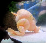 説明書きによると、「原始的なカエルで、舌がありません。一生を水の中ですごし、陸上には上がりません。
