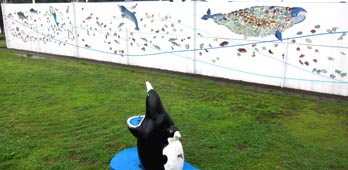 市民参加の水族館づくりの一歩として、上越市民、県内外の人々による手作りの陶板レリーフを水族館の周りの外壁に貼り巡らせ