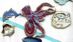 たくさんの子供たちが焼き上げた海の生き物のレリーフで出来上がっている。