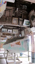 3. 奉納殿の梁には数多くの船絵馬が飾られている。実物のボートも奉納されている。海洋冒険家・堀江謙一氏が、1996年 (平成8年) に、