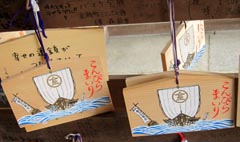 4. 帆掛け船を描いた絵馬。航海や海上操業の安全を祈念するだけでなく、いろいろな私事を書き綴って願掛けする一般参拝者も