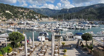 列車は弓なりになった美しい湾岸線沿いにどんどん進み、ソリェール港 (Port de Sóller) に到着する。狭い湾口の両岸先端の崖上には、