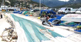 海岸通り沿いにさらに奥へ進むと湾に突出した埠頭がある。猟師のようには余り見えないが、初老の漁師が底引き網らしきものを