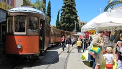 2. ソリェールから港へ向かう観光列車。広場がその起点でもある。 [拡大画像: x25525.jpg]